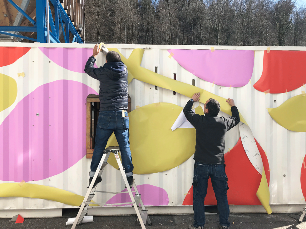 Décoration du container et identité visuelle du projet.