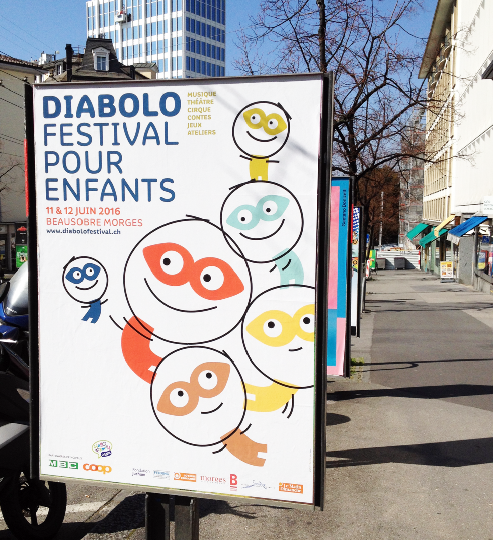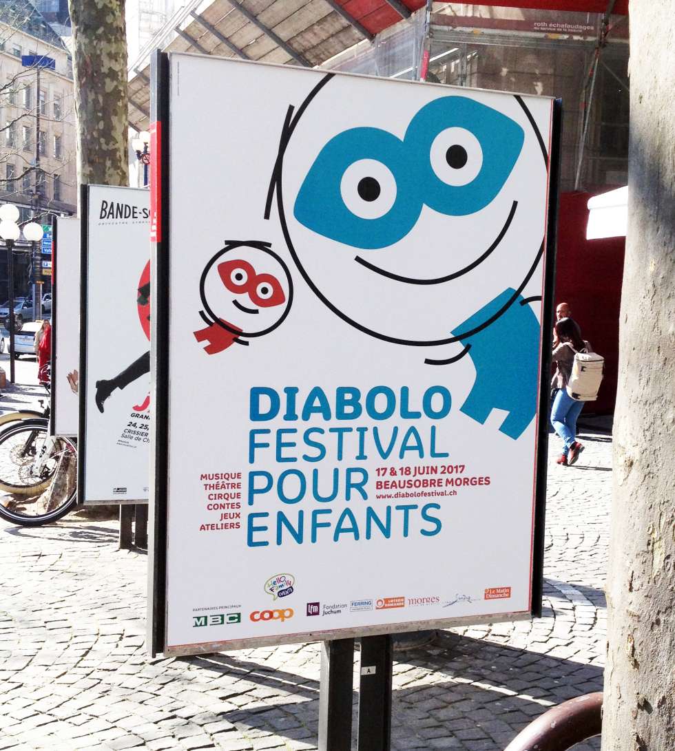 Matériel de promotion : affiches, programmes, site internet, annonces, t-shirts, etc. Client Diabolo Festival