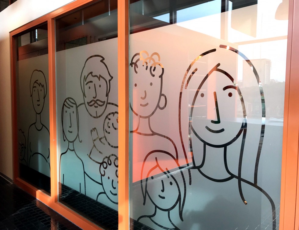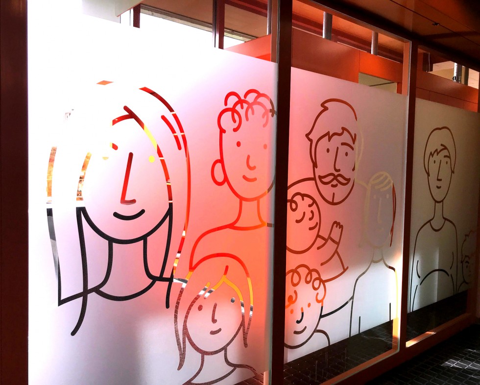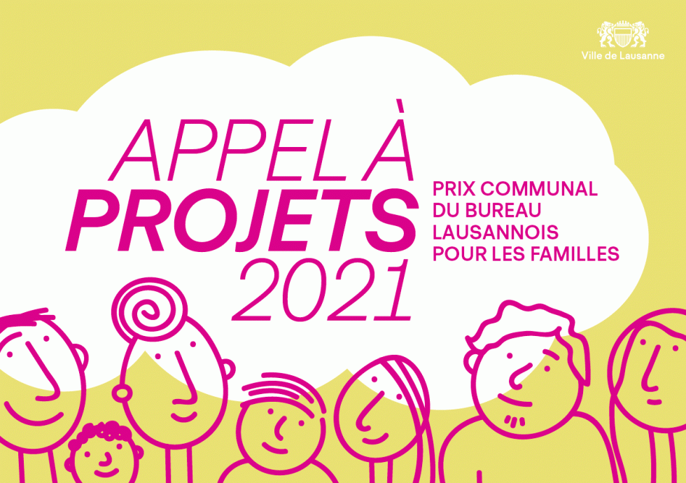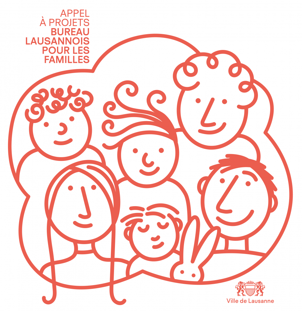 Matériel de promotion : affiches, programmes, lettres d'information, prix, cartes, etc. Habillage de l'entrée du Bureau dans le bâtiment administratif de Chauderon de la Ville de Lausanne Client BLF Bureau lausannois pour les familles
